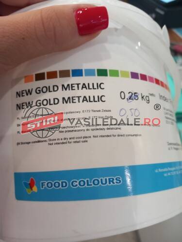 • S-a identificat produsul colorant galben/auriu metalic folosit la prepararea băuturilor fără a fi însoțit de traducere în limba română;
