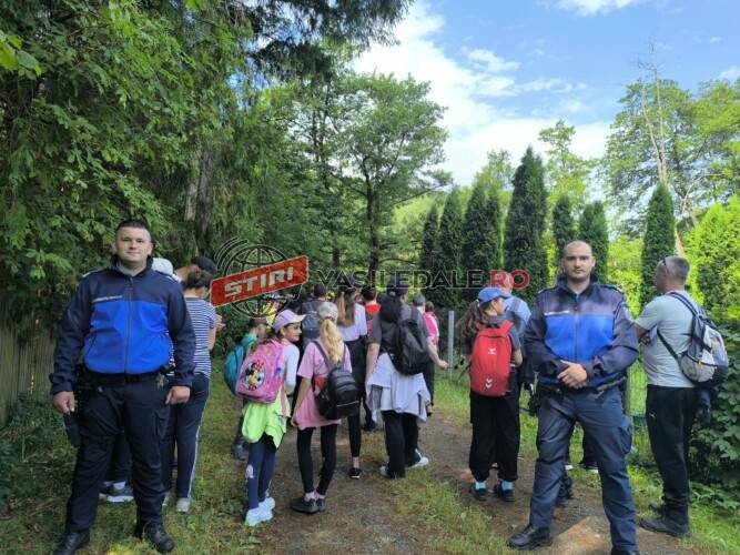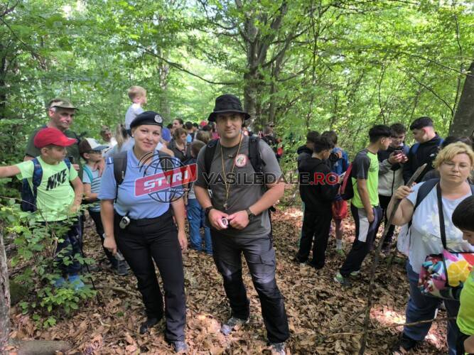 Încântarea copiilor de a parcurge un traseu prin pădure a fost prilejul perfect pentru învățarea regulilor din drumeție. Jandarmii le-au arătat marcajele de pe traseu, provocându-i pe ei să le găsească pe următoarele dar și să urmeze săgețile de orientare.
