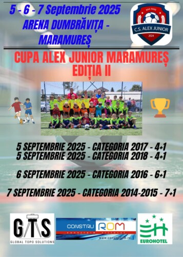 Clubul de fotbal C.S. Alex Junior Maramureș în parteneriat cu Global Topo Solutions, organizează turneul de fotbal pentru copii „CUPA ALEX JUNIOR MARAMUREȘ” ediția II.