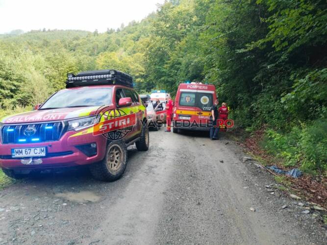 Apelul venit prin 112 de la un angajat al Poliției de Frontieră aflat în timpul liber pe munte a semnalat faptul că în zona indicată o mașină de teren s-a răsturnat și rostogolit într-o râpa și 4 dintre ocupanții mașinii de teren sunt prinși în vehiculul implicat în accidentul de pe traseul greu practicabil.