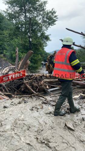 La fața locului intervin echipaje din cadrul Secției de Pompieri Năsăud pentru recunoaștere, Serviciul Voluntar pentru Situații de Urgență Coșbuc, cu un buldoexcavator pentru degajarea carosabilului, precum și utilaje ale Secției Drumuri Naționale Bistrița, angrenate în lucrări de îndepărtare a materialului aluvionar și restabilire a circulației, informează Comitetul Județean pentru Situații de Urgență Bistrița-Năsăud.