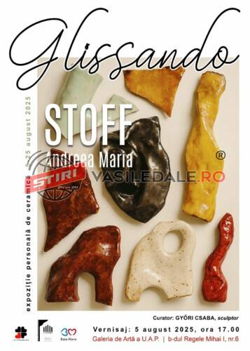 Galeria de Artă a U.A.P., Baia Mare (b-dul Regele Mihai I, nr. 6) găzduiește marți, 5 august, începând cu ora 17:00, cea de-a doua expoziție personală de ceramică a Andreei Stoff, intitulată „Glissando” – o cercetare a formelor, materialității și culorii, născută dintr-o perioadă de căutare și joacă sinceră cu lutul.