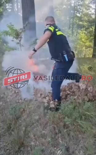 Fără a sta pe gânduri, agentul a oprit autospeciala și a intervenit rapid cu extinctorul din dotare, reușind să oprească propagarea focului.