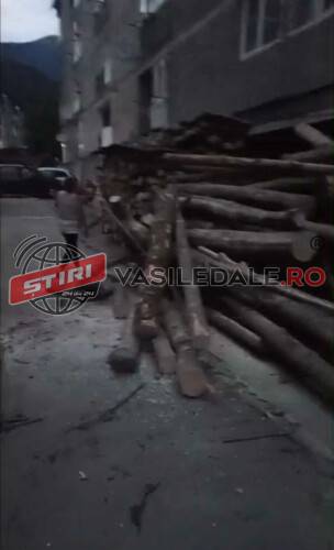 Lemnele au fost descărcate direct pe șosea astfel aceasta a fost blocată. Vecinii i-au cerut să elibereze drumul de acces însă totul s-a transformat într-un adevărat circ.