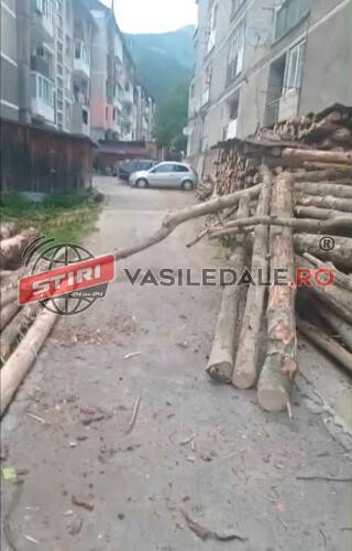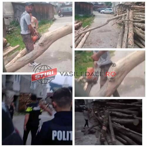 Lemnele au fost descărcate direct pe șosea astfel aceasta a fost blocată. Vecinii i-au cerut să elibereze drumul de acces însă totul s-a transformat într-un adevărat circ.