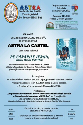 În 28 august 2025 are loc lansare de carte la castelul Teleki din Coltău ora 14.00 O poveste inedită despre contele Teleki din iarna anului 1847