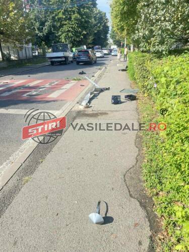 Șoferul unei autoutilitare a pierdut controlul vehiculului, s-a izbit de un stâlp și a ricoșat pe partea cealaltă a drumului, trecând peste trotuar și oprindu-se pe spațiul verde. A fost transportat la spital, fiind conștient în salvare.