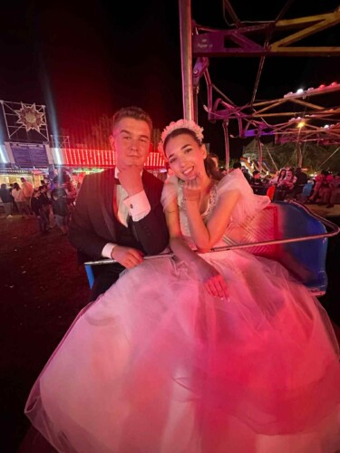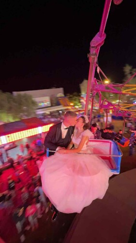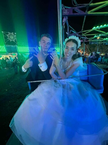 VIDEO: Mirele și mireasă ”au fugit” de la nuntă pentru a se da o tură cu linghișpirul de la Sărbătoarea Castanelor