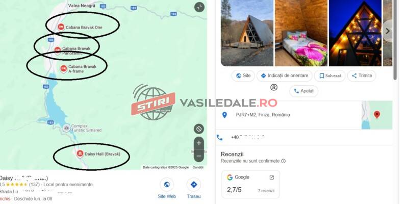 În ultima vreme rețelele de socializare au fost pur și simplu inundate de fotografii și imagini video cu celebrele cabane construite în zona Firiza – Ferneziu. Este vorba despre cabanele Bravak One, Bravak Panoramik, cabane A-frame și Daisy Hall (sala de evenimente). Dintre toate acestea, conform celor de la Compartimentul Disciplină în Construcții din cadrul Direcției Generale Poliția Locală, doar prima (Bravak One) a intrat în legalitate. Și asta după ce au fost amendați contravențional. ”Cu ocazia unui control efectuat în cursul lunii mai 2021 s-a constatat că aceasta a fost realizată fără a deține o Autorizație de Construire. Investitorul a fost sancționat cu amendă contravențională, prin procesul verbal nr. 45/21.05.2021, iar ca măsuri complementare au fost dispuse oprirea lucrărilor până la obținerea Autorizației de Construire și intrarea în legalitate. Ulterior a fost obținută Autorizația de Construire nr. 36/01.03.2023, realizânduse astfel intrarea în legalitate” se pricează în răspunsul oficial primit de site-ul www.vasiledale.ro.