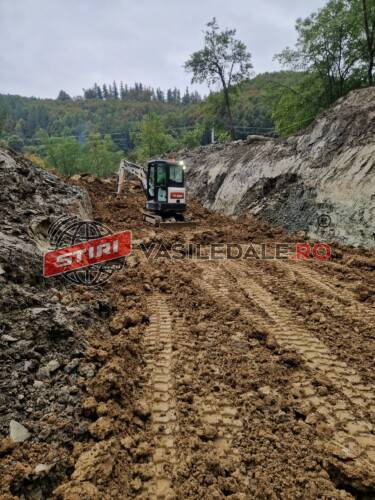 Au fost întreprinse demersurile necesare pentru transportul materialului principal de umplere a conului de surpare (argilă cu un coeficent ridicat de impermeabilitate) și s-a procedat la umplerea/rambleierea conului de surpare. Lucrarea permite controlul atent al densității, protejează placa de beton de solicitări excesive și de transmiterea de vibrații spre taluzul de la limita cu drumul județean. De asemenea, asigură devierea, în mod natural, a apelor de suprafață în afara zonei conului de scufundare.