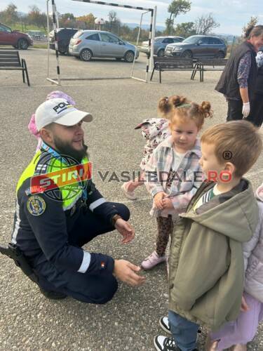 Totodată, polițiștii le-au prezentat elevilor dotările și echipamentele specifice folosite în activitatea zilnică — autospecialele de poliție, mijloacele de semnalizare, uniformele și alte instrumente de lucru. Copiii au avut ocazia să vadă îndeaproape aceste dotări și să înțeleagă mai bine rolul și responsabilitățile poliției în comunitate.