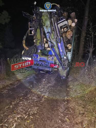 Două echipaje ale poliției au efectuat semnalele regulamentare de oprire al camionului încărcat cu bușteni. Conducătorul auto a tras rapid pe o uliță, a oprit și a fugit de la volan dispărând în întuneric.