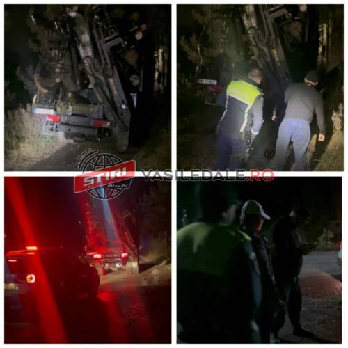 Două echipaje ale poliției au efectuat semnalele regulamentare de oprire al camionului încărcat cu bușteni. Conducătorul auto a tras rapid pe o uliță, a oprit și a fugit de la volan dispărând în întuneric.
