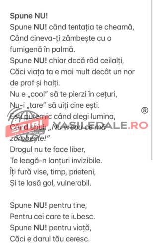 De această dată, vocile care au transmis mesajul nu au fost doar cele ale polițiștilor, ci și ale elevilor care au ales să lupte, prin creații artistice, împotriva tentațiilor și pericolelor ascunse în spatele substanțelor interzise.