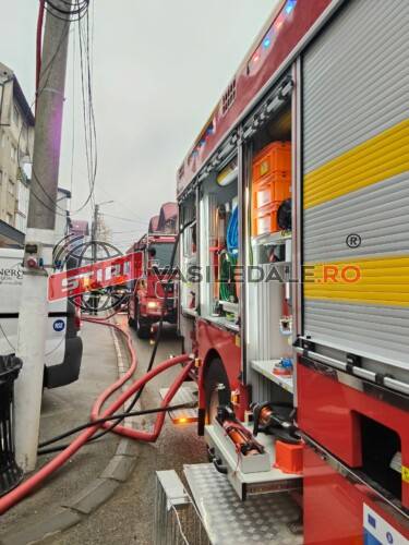 Incendiul este localizat in acest moment. Pompierii lucreaza pentru lichidarea focarelor din interiorul acoperisului invelit cu tabla.
