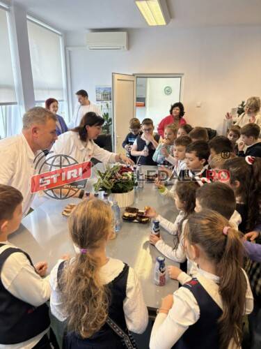 O nouă zi în care, holul Spitalului Județean de Urgență Baia Mare „Dr. Constantin Opriș” a devenit un spațiu al emoțiilor sincere. Vizita elevilor clasei a II-a D de la Școala „George Coșbuc”, coordonați cu grijă și dăruire de doamna învățătoare Alina Terec, a adus bucurie într-un loc în care, zi de zi, se caută vindecarea. Copiii l-au colindat cu sufletul deschis pe domnul manager, Dr. Rareș Pop, chiar în biroul acestuia, într-un moment cald și emoționant.