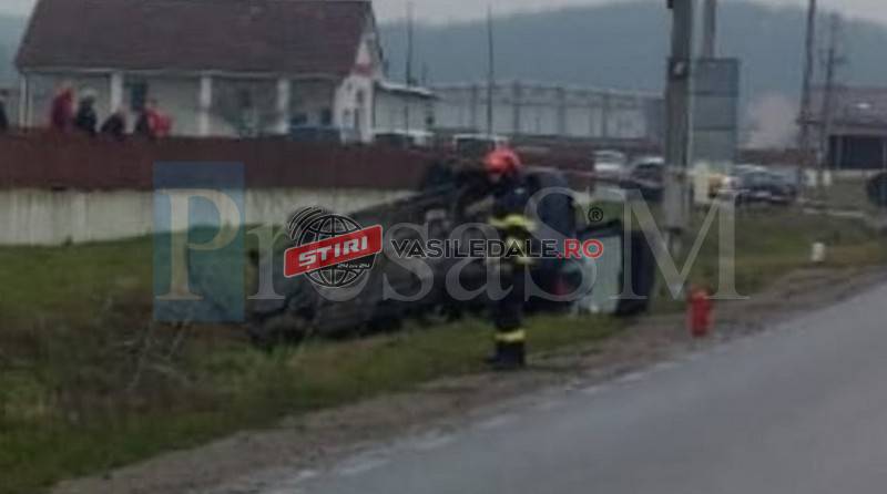 Potrivit primelor informații obținute de PresaSM, conducătorul auto ar fi derapat în condiții rămase, deocamdată, neclare, ar fi lovit un stâlp de pe marginea drumului și s-a răsturnat pe partea carosabilă, prondu-se în șanț. Impactul a fost unul puternic, iar avariile autoturismului sunt considerabile. La fața locului au intervenit echipaje de poliție, care au demarat cercetările pentru stabilirea împrejurărilor exacte în care s-a produs evenimentul. Din cauza accidentului, traficul rutier în zonă s-a desfășurat cu dificultate. În funcție de diagnosticul stabilit de cadrele medicale, polițiștii vor face încadrarea juridică a faptei.