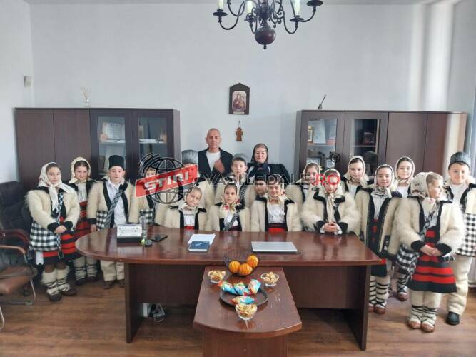 Angajații Primăriei comunei Bârsana au primit vestea Nașterii Mântuitorului. Elevii școlii Generale din comună au fost primii care au trecut pragul instituției. Îmbrăcați în costume tradiționale, coconii au fost răsplătiți pentru colindă cu fructe și dulciuri.