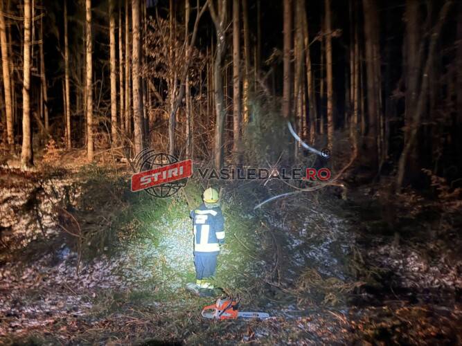 În această seară, echipajul SVSU Târgu Lăpuș a intervenit pentru degajarea carosabilului pe DN 18B, în zona Pietriș, unde un copac căzut bloca parțial circulația rutieră.