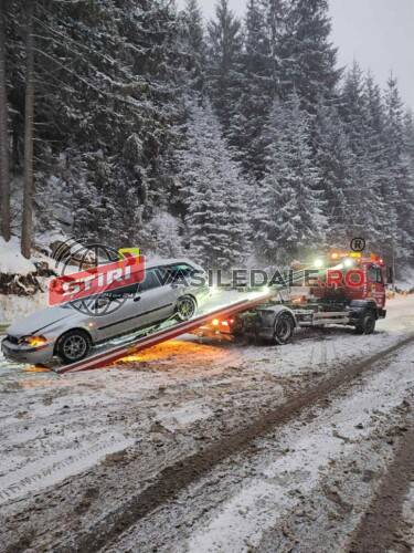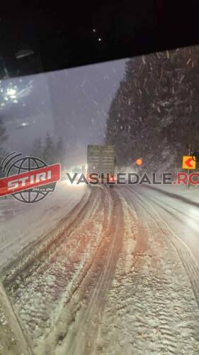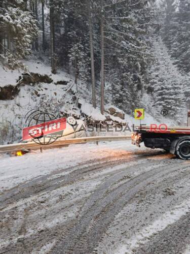 Un alt incident s-a petrecut în aceeași zonă. Șoferul unui autotren nu a mai reușit să urce și a rămas înțepenit. A fost tractat până în vârful pasului de utilajele de deszăpezire.