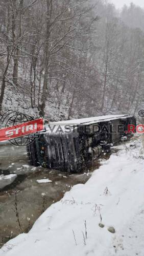Din cauza carosabilului acoperit cu zăpadă un autotren s-a răsturnat în râul Sălăuța. Conform ISU Bistrița Năsăud în zonă a fost trimis un echipaj al pompierilor militari, un echipaj EPA SMURD și SVSU Romuli. Din primele informații conducătorul auto este conștient, cooperant, ieșit din cabină. Evenimentul rutier s-a produs la ieșirea din localitatea Romuli spre Fiad. La volan se afla un bărbat în vârstă de aproximativ 50 de ani, din Reghin, care se deplasa dinspre Maramureș. Acesta a acuzat dureri la un picior.