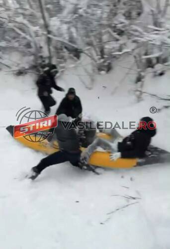 Da ați auzit bine: au scos canoea, au urcat în dea și au pornit la vale prin zăpadă. Inițial pe o uliță din zona de munte a orașului.