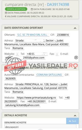 Totuși, conform SEAP, Primăria comunei Satulung a achiziționat prin cumpărare directă două servicii de deszăpezire: unu în valoarea de 10.000 euro, celălalt aproape 6.000 euro (82.500 lei în total). Cele două achiziții publice s-au făcut în data de 31 octombrie 2025.