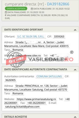Totuși, conform SEAP, Primăria comunei Satulung a achiziționat prin cumpărare directă două servicii de deszăpezire: unu în valoarea de 10.000 euro, celălalt aproape 6.000 euro (82.500 lei în total). Cele două achiziții publice s-au făcut în data de 31 octombrie 2025.