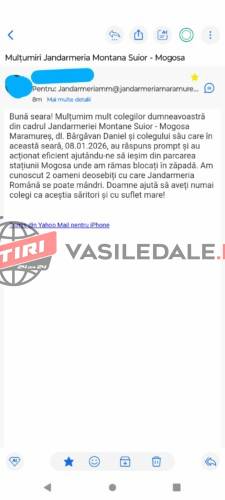 În semn de apreciere pentru gestul jandarmilor, familia a transmis un mesaj de mulțumire pe adresa de e-mail a instituției.