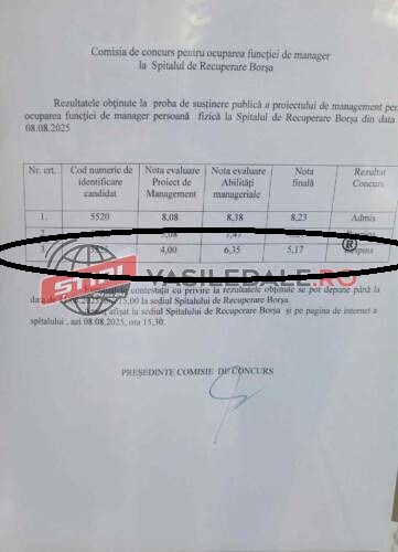 Ministrul Sănătății prin ordin de ministru A DECIS: manager interimar cu NOTA 4 la susținerea proiectului de management