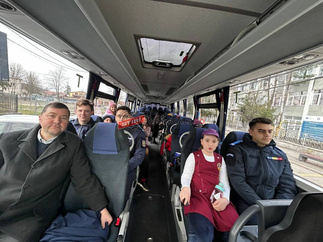 Drumul până la Baia Sprie a fost un prilej de veselie pentru copii și un moment de încântare pentru jandarmi care au ascultat cu drag cântecele vesele pregătite pentru ei, dar și relatările hazlii și pline de inocență.