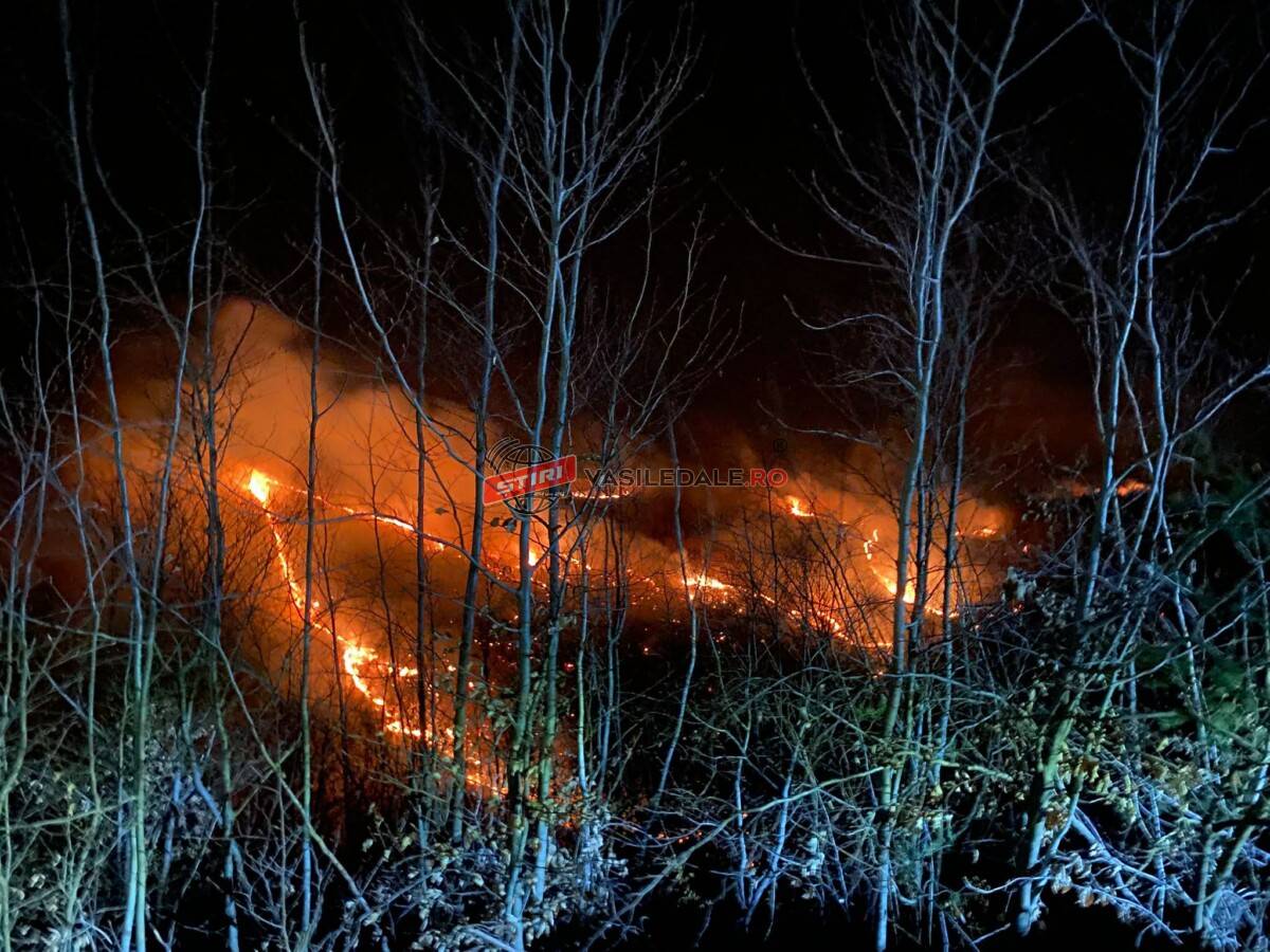 Incendiul se manifestă pe mai multe focare, pe o suprafață extinsă, estimată la aproximativ 50 de hectare, existând pericol de propagare către o pădure de brazi din apropiere. Pompierii depun eforturi susținute pentru localizarea și lichidarea focarelor, intervenția fiind îngreunată de terenul dificil și de rafalele de vânt.