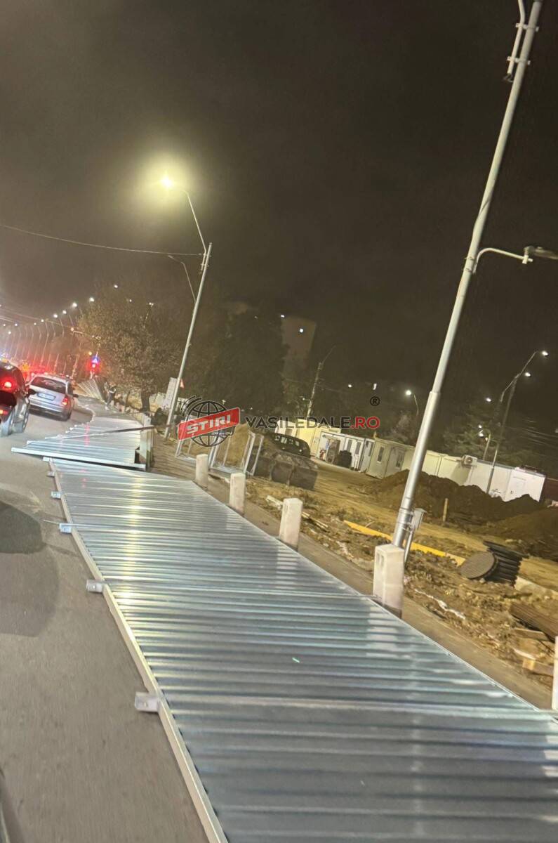 Vântul a pus la pământ gardurile care împrejmuiau lucrările, lăsând zona expusă și creând un potențial pericol pentru trecători și participanții la trafic. De asemenea, sensul giratoriu provizoriu amenajat în zonă a fost împrăștiat de rafale, afectând temporar circulația.