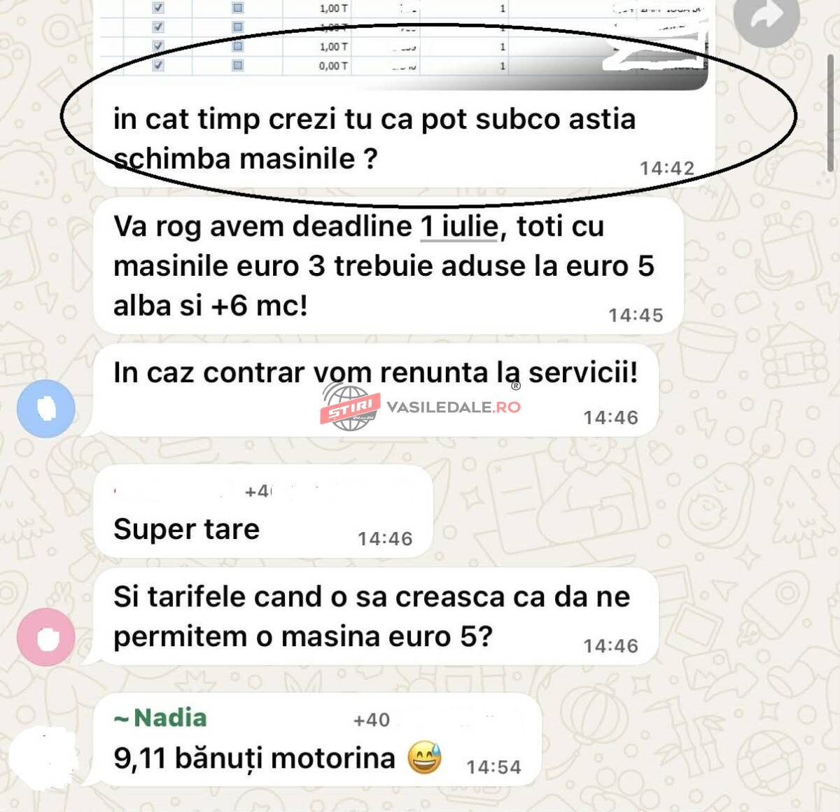 Țin să menționez că nu am avut niciodată probleme cu poliția, zi de zi la volan niciodată nu mi-a fost suspendat permisul de conducere. Astăzi i-am spus că voi prezenta în presa cazul meu, iar dl Sergiu acum a luat măsuri: să scoată toate mașinile euro 3. Cam târziu cred eu. Mai mult, mi-a spus că mă va da în judecată dacă prezint cazul. Mi-a spus ca să șterg tot pentru că altfel voi fi dat în judecată. Oare în țara asta chiar nu mai există legi?” este mesajul transmis de cititorul nostru Armin.