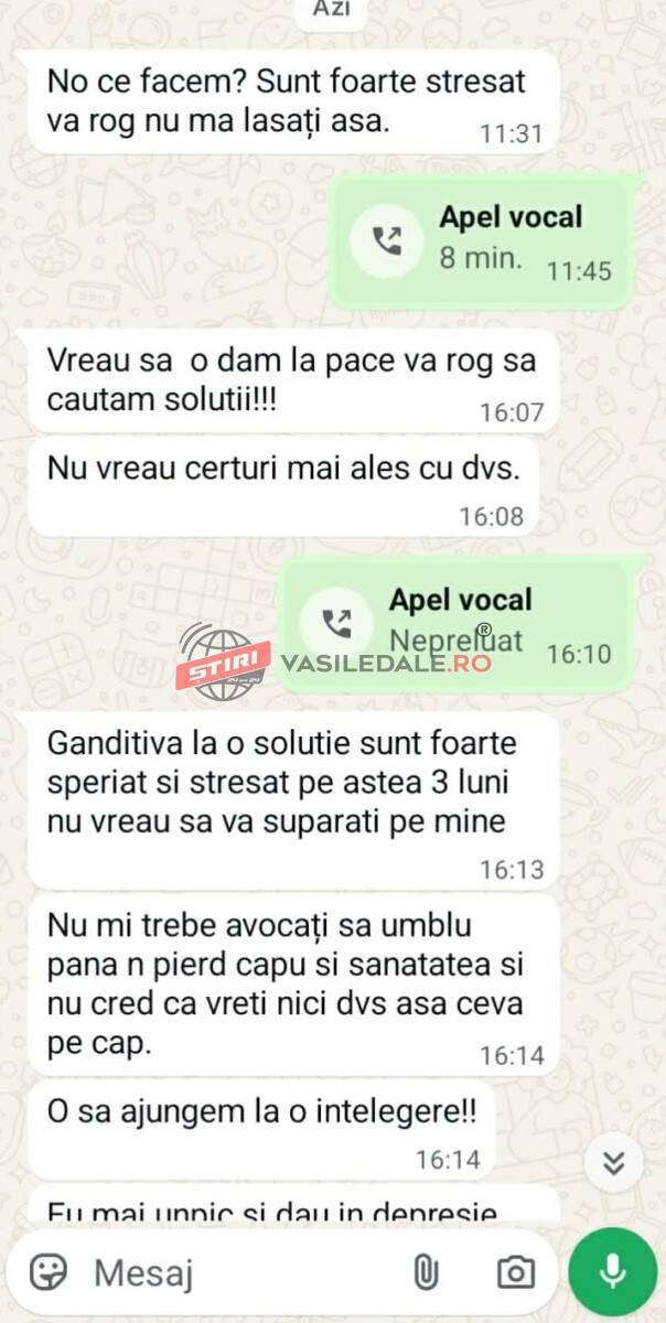 ”Bună ziua doresc sa impartașesc această problemă cu dumneavoastră pentru ca toata lumea să afle despre problema mea. Am fost curier la firma … am reprezentat firma .. și marți 17 martie 2026 veneam de pe rută si m-a oprit poliția și RAR-ul. Au verificat masina de serviciu și au găsit defecțiuni grave la ea. Trebuie să menționez că eu i-am adus la cunoștință managerului sergiu… să îmi schimbe mașina de lucru. Ei m-au obligat să conduc acea mașină. Dacă nu o făceam îmi pierdeam locul de muncă. Trebuia să scot ruta la zi. Mie mi-au suspendat permisul pentru 90 de zile și m-au amendat cu 2.025 lei din cauza defecțiunilor grave găsite. Vă rog prezentați povestea mea pentru că eu am rămas fără permis, fără loc de muncă și fără bani. Vreau să știe toată lumea că subcontractorul la care eu am muncit este o bătaie de joc.