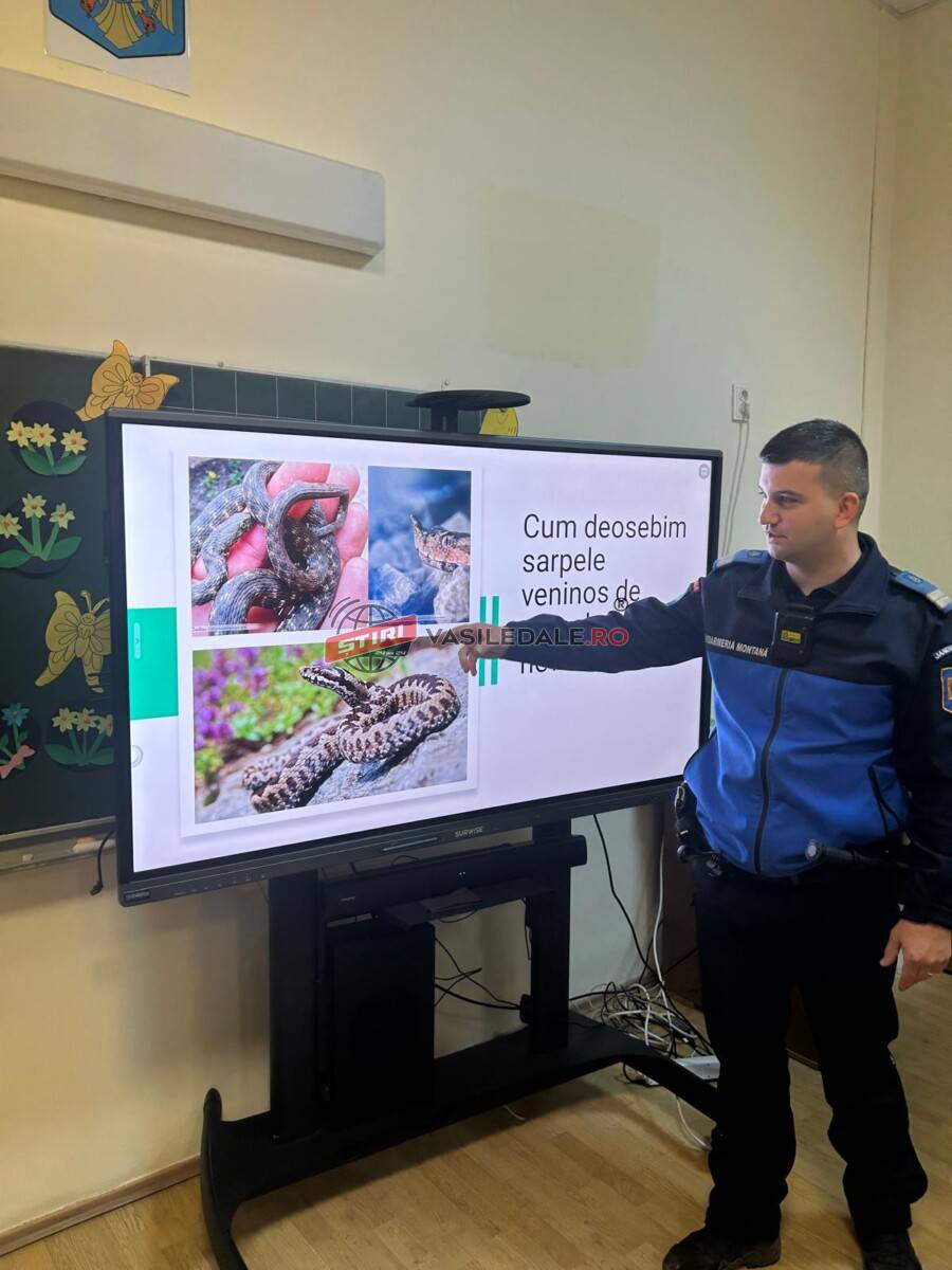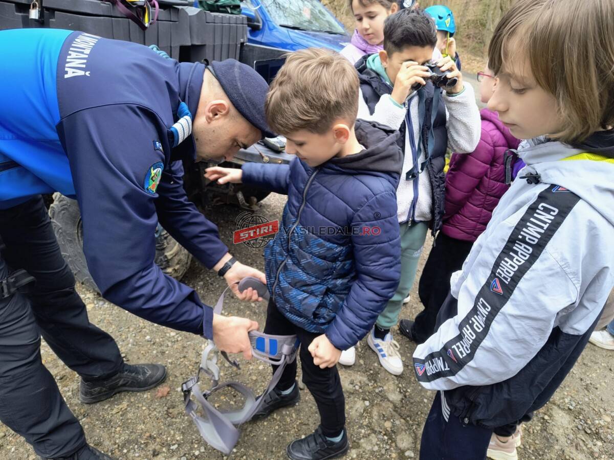 Mai întâi, jandarmii le-au prezentat într-un mod atractiv ce presupune pregătirea pentru o ieșire la munte: cum alegem un traseu montan, care sunt elementele de echipament necesare în drumeție sau în ce moment planificăm o ieșire în natură. Fișele de lucru pregătite special pentru ei de jandarmi nu i-au pus în dificultate și nici întrebările despre animalele sălbatice. Distracția a fost garantată când jocul a presupus imitarea unui animal sau redarea sunetului după care acesta este recunoscut.